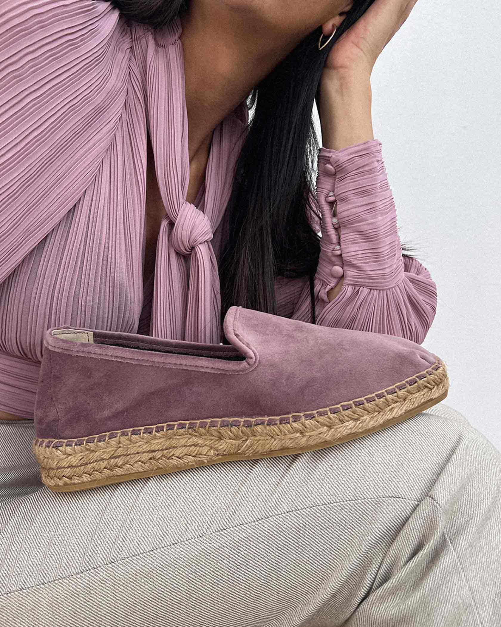 Nuestras bailarinas femeninas Aloia en color malva son la elección perfecta para un look relajado y elegante. Confeccionadas en tejido de terciopelo y una plantilla acolchada, te brindan la comodidad que necesitas para cualquier ocasión.