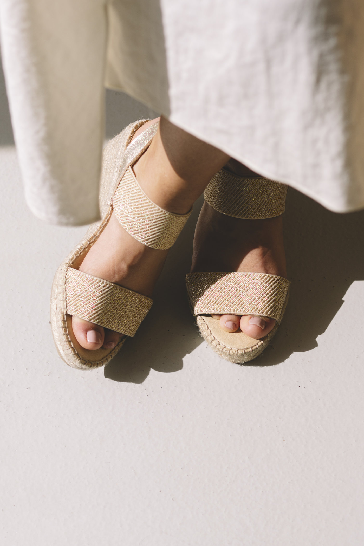 La sandalia dorada con cuña de esparto Nerina está pensada para esos días en los que quieres brillar sin exagerar. Es luz, pero sofisticada. Es altura, pero ligera. Es ese equilibrio perfecto entre naturalidad y elegancia.